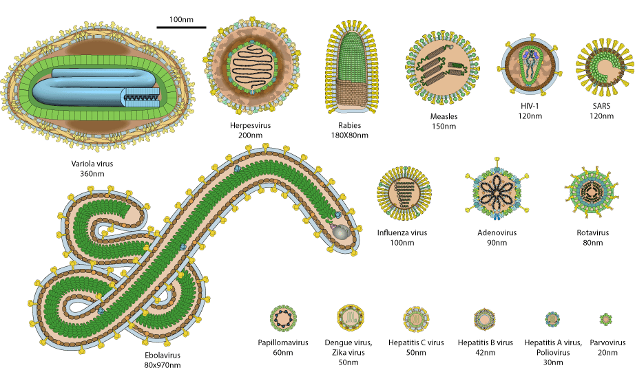 Figure: A representation of different viruses and their shapes and sizes.[15]