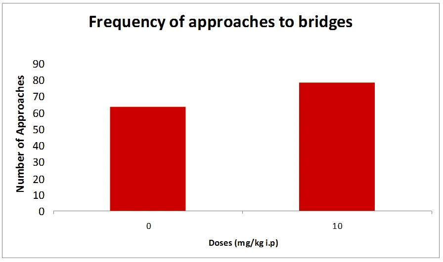 The following graph shows a sample for a number of entries to the bridge when the subject is tested for its response to novel and open spaces.