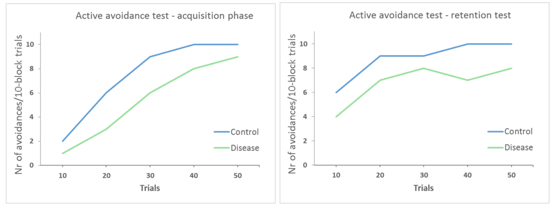 Using graphs similar to these allows to compare the avoidance behavior between different disease or treatment groups and their effect on learning.