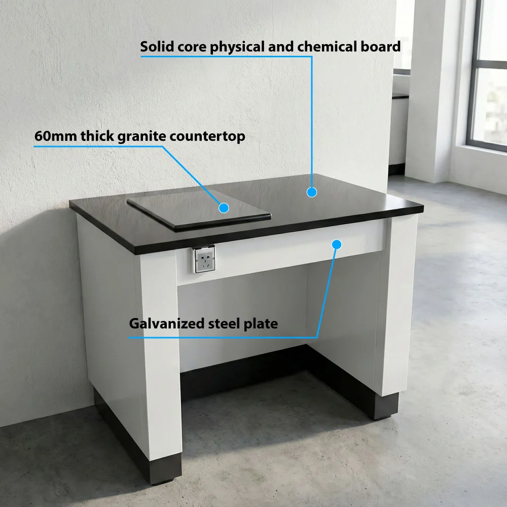 Vibration Isolation Mastery: Featuring a massive, highly dense Granite Countertop, this bench effectively absorbs and dampens environmental & elements vibrations. The heavy stone slab is acoustically decoupled from the main frame, ensuring your analytical balances, microscopes, and high-precision sensors operate in a near-perfectly isolated environment.