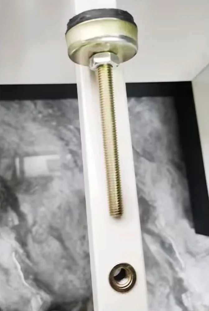 Adjustable Feet Install adjustable feet at the connection between the vertical frame and the floor, with an adjustment range of no less than 30mm. The feet are made of 8-inch galvanized bolts, and the base is covered with High-Light anti-slip plastic pads.