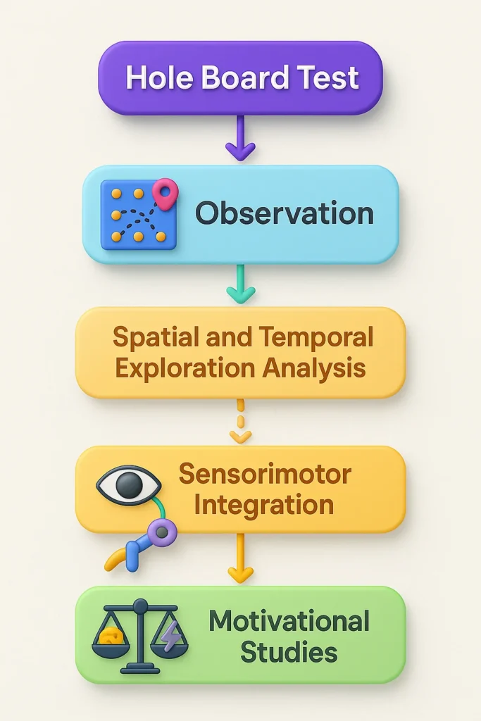 By tracking where and when animals interact with holes, researchers can assess exploration strategies, habituation, and anxiety. Patterns such as repeated visits to the same hole or preference for periphery vs. center are key indicators.