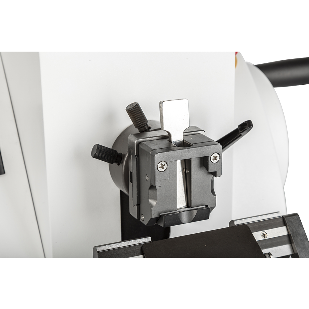 User-Friendly Design & Waste Management: Features a pure-green digital display for essential parameters, offers easy switching between specimen clamps, and includes a large-volume, easily removable waste tray with top storage for disposable blades.
