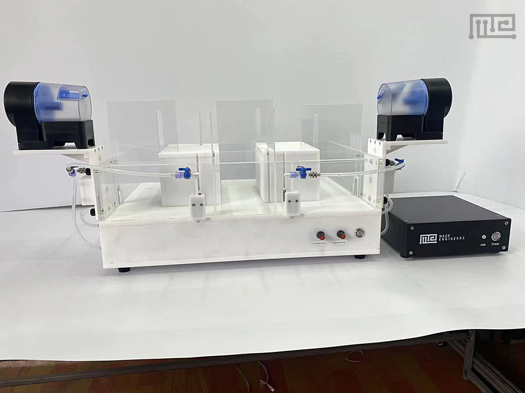 - It consists of a chamber with test areas, returning pathways, doors, sensors, water stirrers, a colored wall insert, and pellet dispensers in each goal arm.Ā