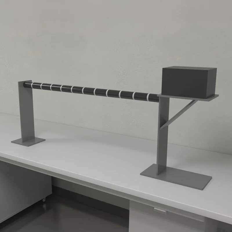 The Balance Beam apparatus features a straightforward design with a narrow beam elevated above the ground by support columns. The beam has a tapered shape and comes in lengths ranging from 125 cm to 1 meter. For animals with motor impairments, an additional lower, flat beam can be provided to offer extra support.