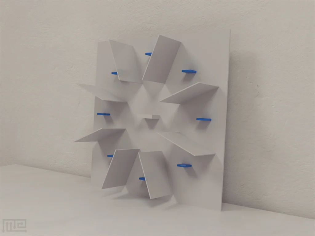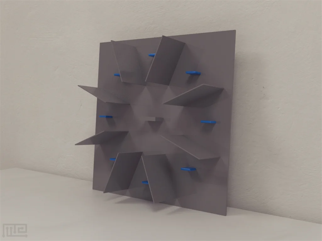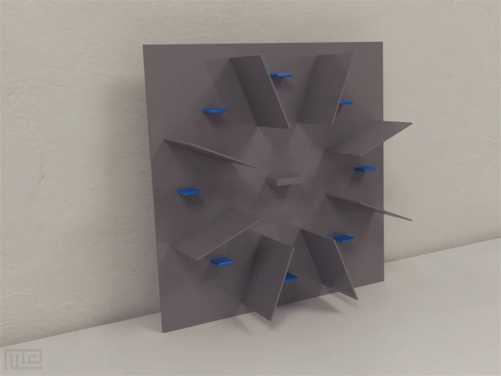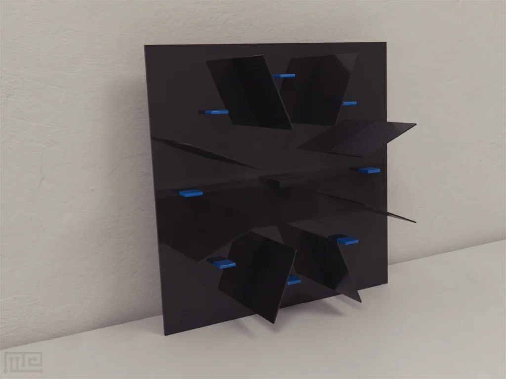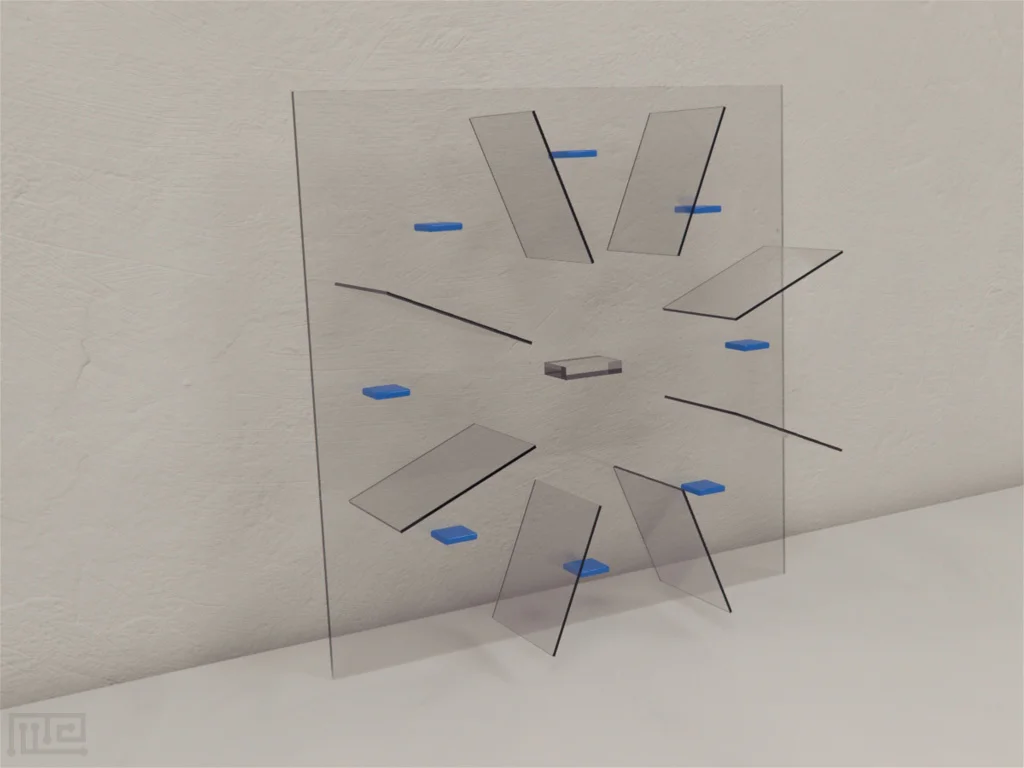 Atop each of the eight blue chips, which serve as landing platforms for bumblebees, there is a 4mm hole. This hole allows the bees to extend their proboscis through and obtain a reward.