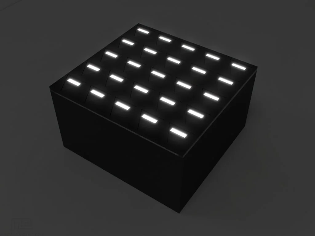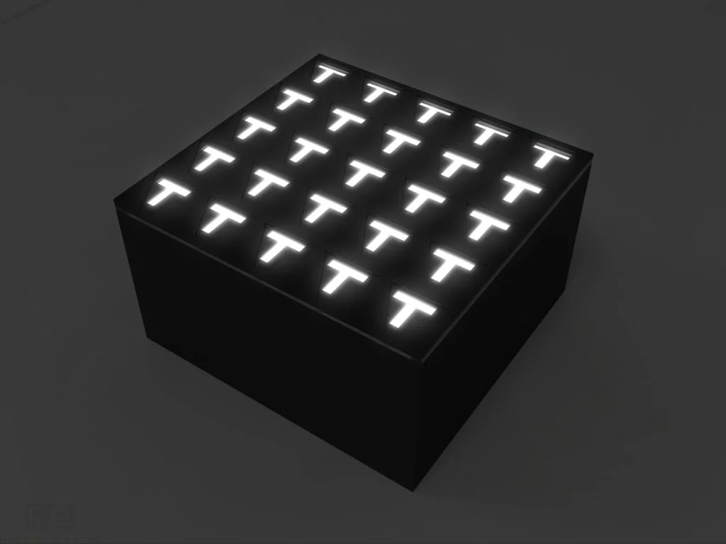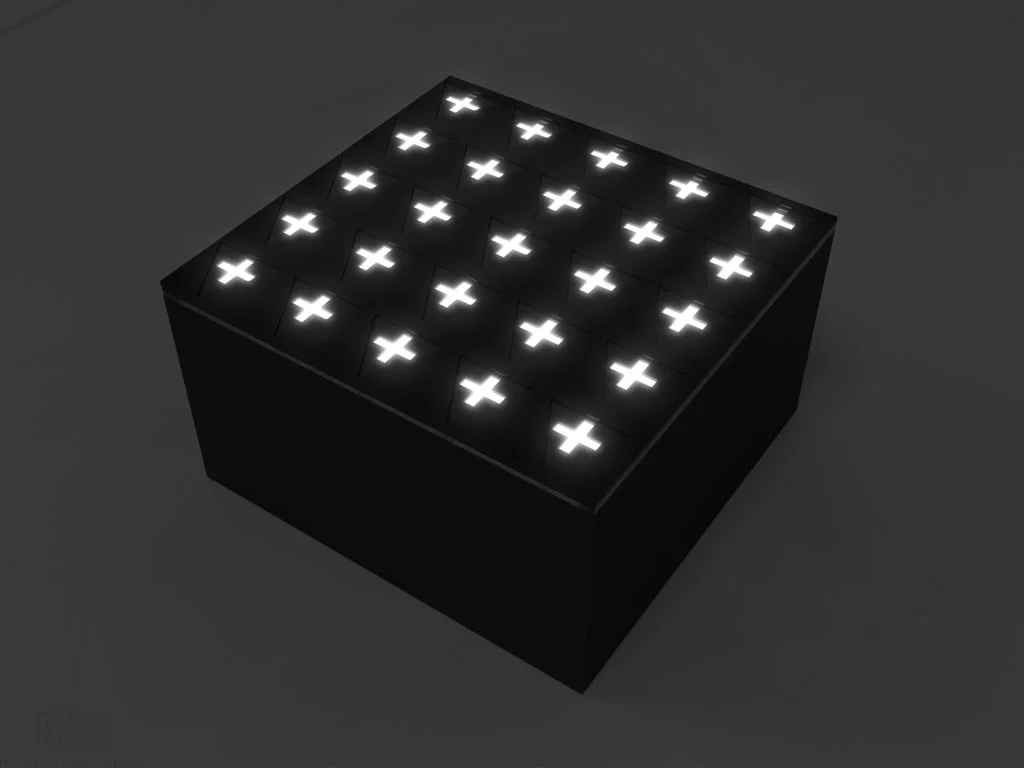 • The Drosophila Maze Array consists of four layers; a translucent backlit bottom, walls of the individual maze, infrastructure around the maze to allow for strength, and a clear reflective acrylic lid.