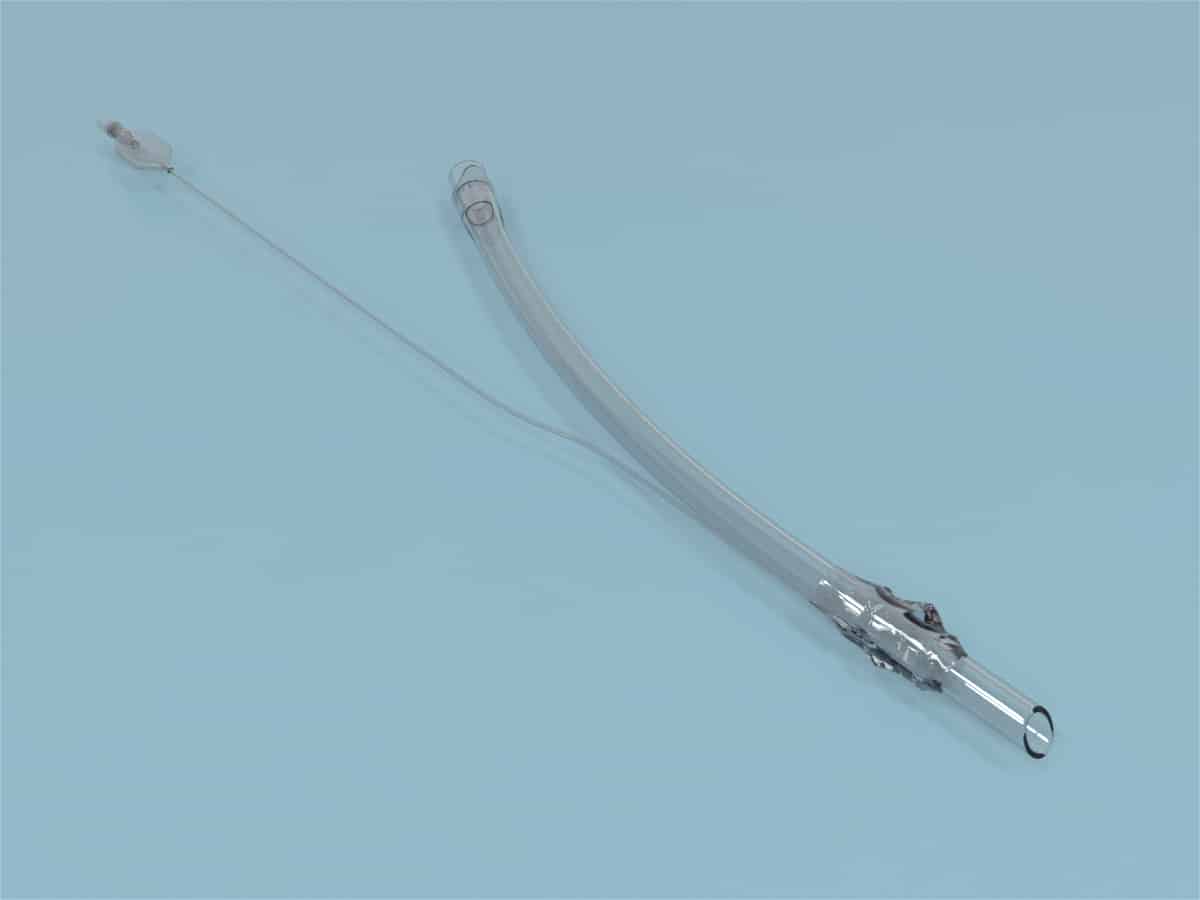 Endotracheal tubes usually will have a preformed curve to allow better visualization of laryngeal opening during intubation. The tubes have a beveled distal end and may also have a small opening opposite the bevel called the Murphy eye as an additional path for gas in case the bevel is occluded.