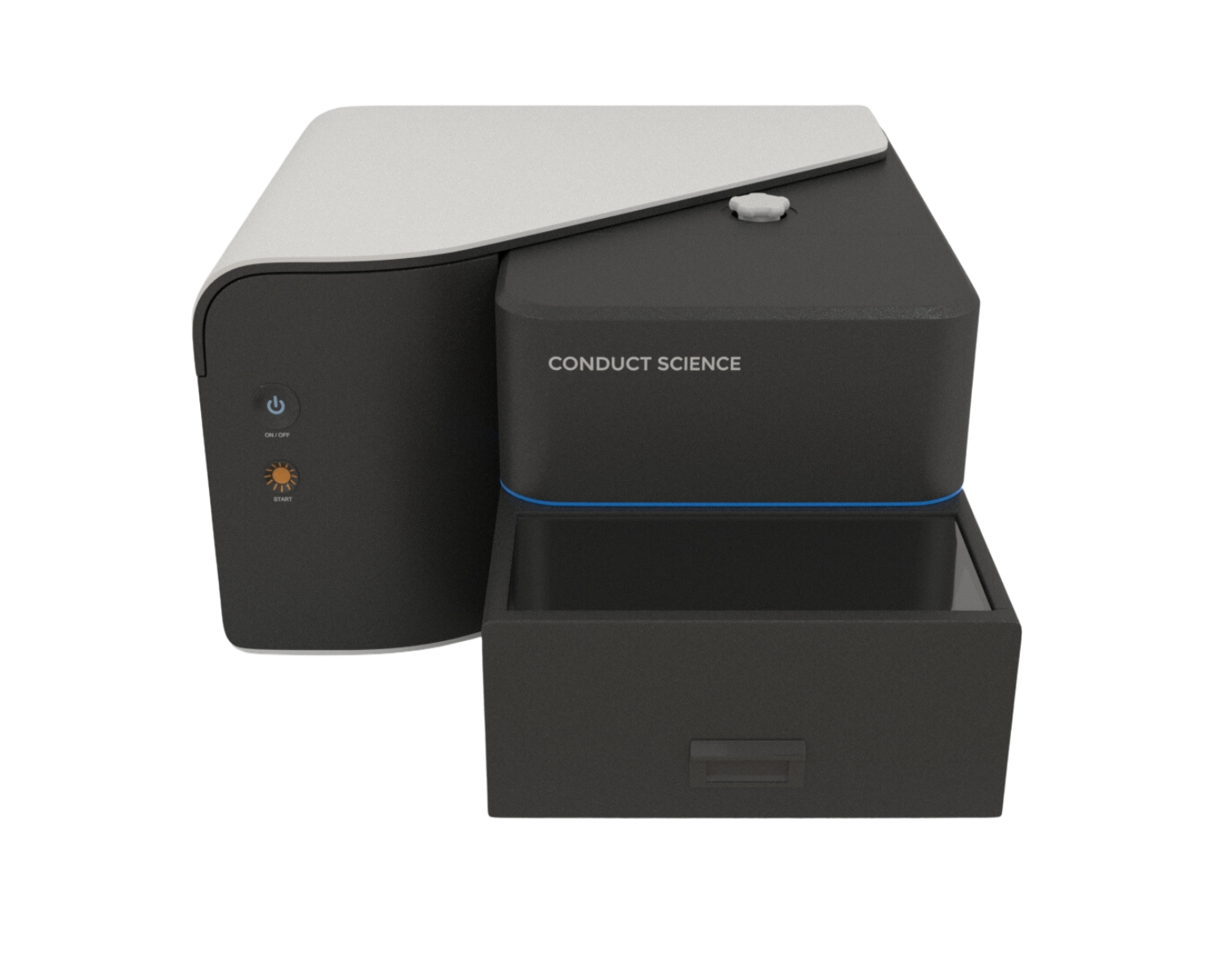 The electronics system converts the fluorescent signals from the detectors into electronic signals that can be read by a computer.Ā