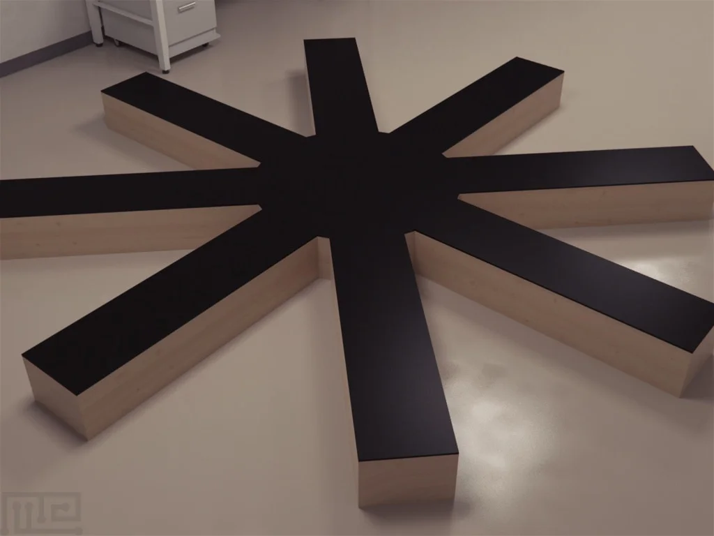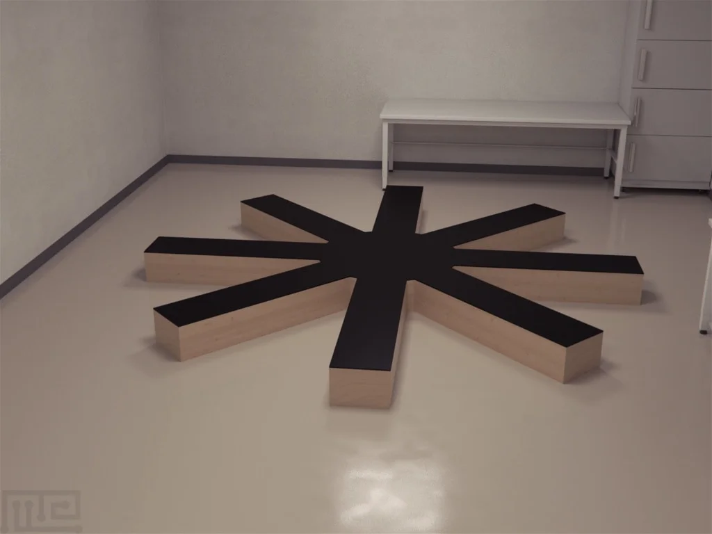 Our mixed reality Elevated Plus Maze integrates a physical wooden structure for a more immersive experience. The maze is built from wood, with each arm measuring 30 cm in width, 20 cm in height, and 175 cm in length. The arms extend perpendicularly from a central junction. The maze occupies a 350 x 350 cm area within a 550 x 550 cm room.