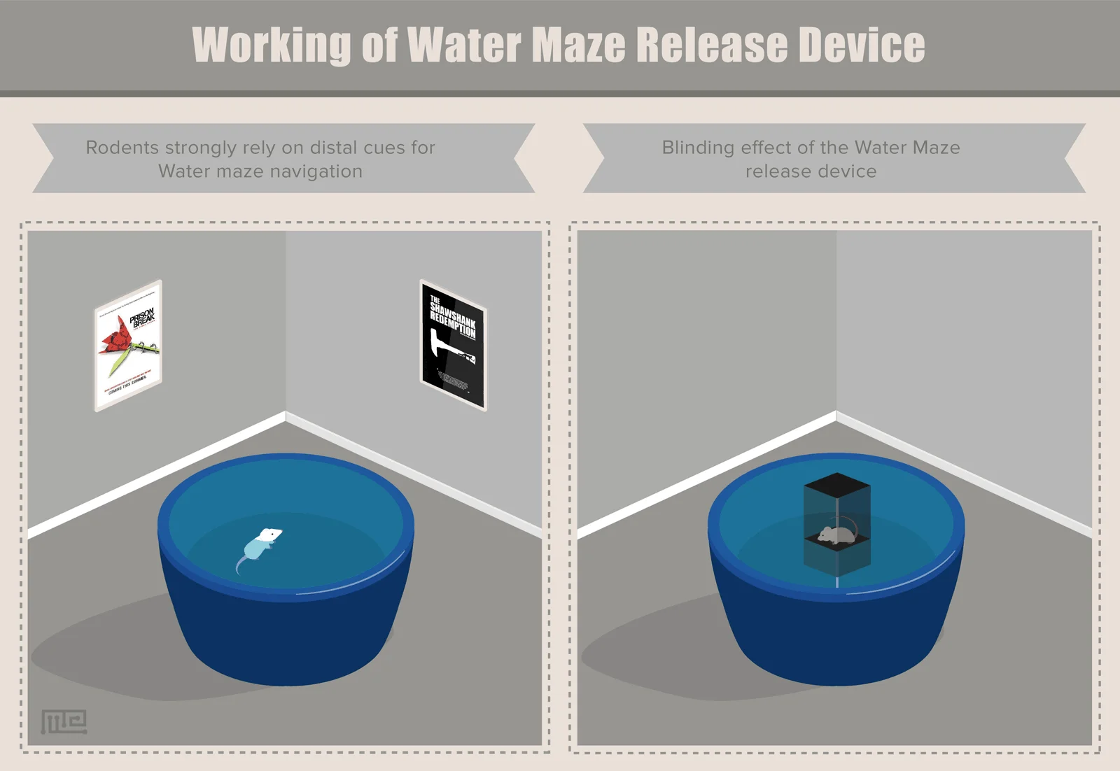 - The water maze release device is a convenient tool that provides an easy and standard method of transporting the rodent from the cage to the testing area and finally to the water maze apparatus during the start of trials