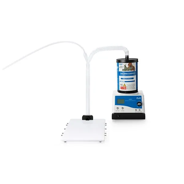 This traditional anesthesia solution features a concentric tubing mask design, offering greater flexibility for animal positioning on the table and a wider field of view around the animal’s head compared to traditional cone masks. A key advantage is its efficient scavenging system, which effectively draws away leaked waste gas from around the animal’s nose.