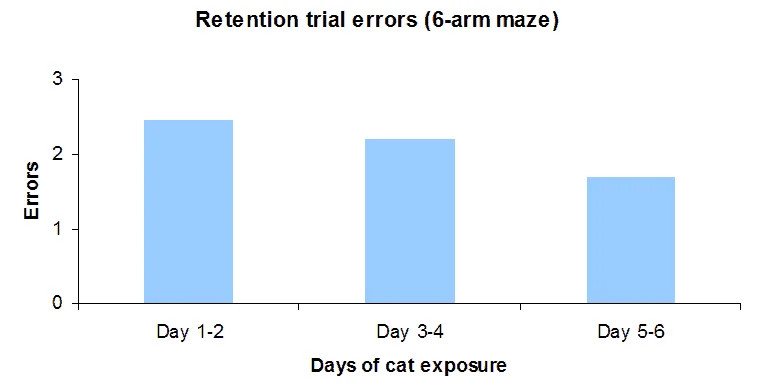 The graphs above allow for easy visualization of observable factors and comparisons. The graph below shows sample data of errors made by subjects when given a retention test after exposure to a predator (Diamond et al., 1999).