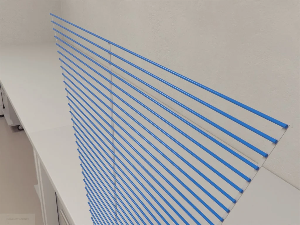 Similar behavioral assessments to the Stairway test include the Tilt Ladder, Horizontal Ladder, Balance Beam, and Rotarod. While many of these tasks use the fear of falling as motivation, the Stairway test’s primary motivator is the placement of the home cage at the top of the ladder. Since the ladder is nearly vertical and the home cage is out of sight, the subject must learn its position through trial and error. Unlike the Rotarod, which is a dynamic apparatus, the Stairway test is static.