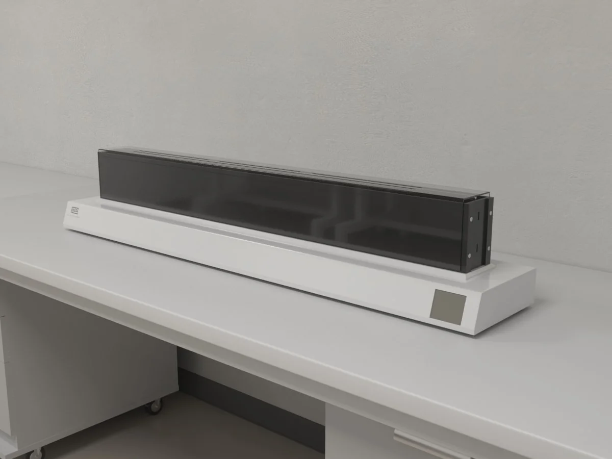 The test apparatus consists of a platform made up of 10 adjacent plates in 2 rows, allowing for 20 total temperature zones. Each plate can be set at different temperatures, forming a temperature gradient. The temperatures can range from -5 to 70°C, such as to fit the experimental design.