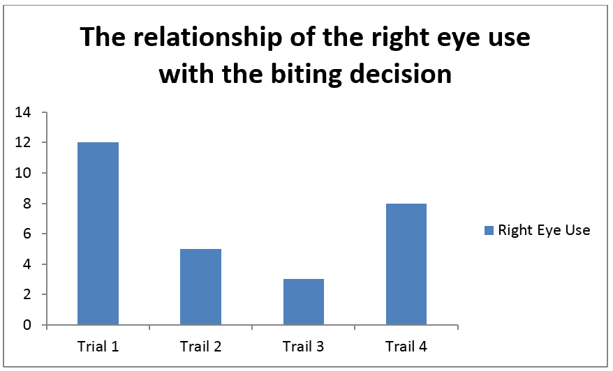 From the above data, it is evident that the right eye is used to make decisions towards a novel stimulus. Once the stimulus is no longer new; the use of the right eye drops to a significant extent.