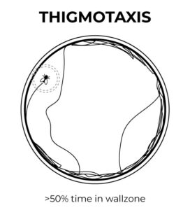 1.Ā Thigmotaxis: The fly clings to the wall of the arena, a behavior that usually signals anxiety or uncertainty.